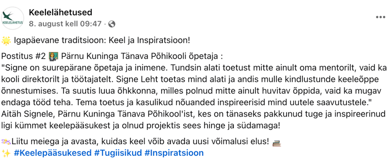 "Kogenud, sõbralik ja abivalmis õpetaja"